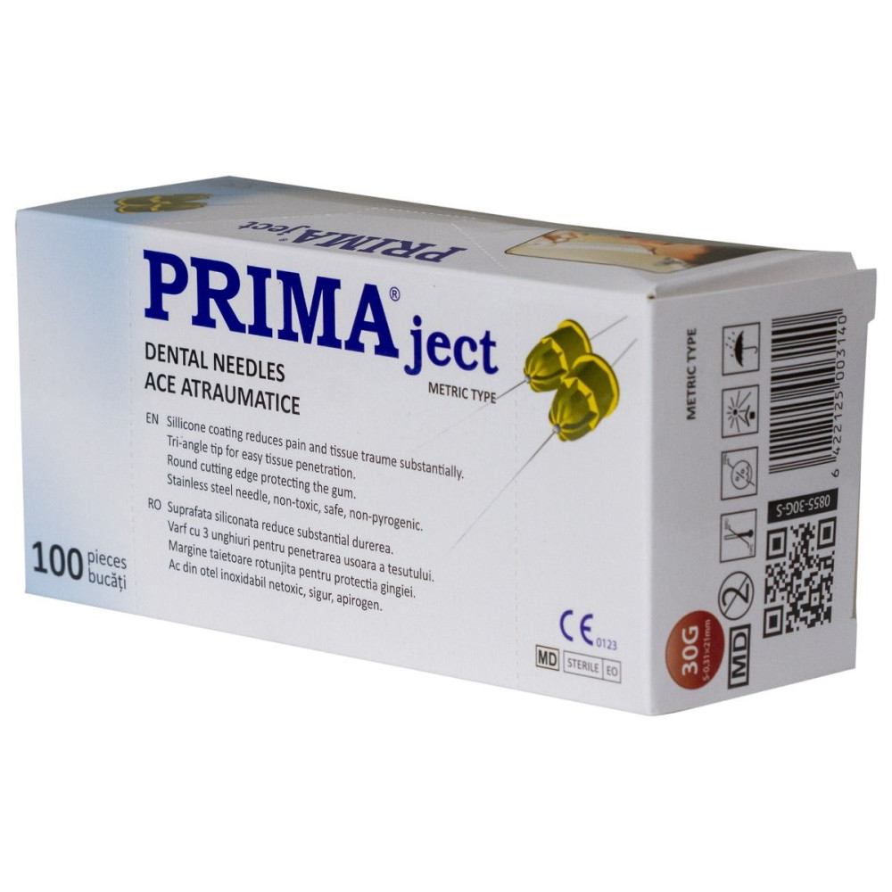 Acele atraumatice PRIMA au o suprafata siliconata, ce reduce substantial durerea din timpul procedurilor. Varful are 3 unghiuri pentru penetrarea usoara a tesutului si margine rotunjita, pentru protectia gingiei. Acele sunt fabricate din otel inoxidabil, de unica folosinta, si sunt utilizate pentru realizarea anesteziei locale. Cutia contine 100 de bucati.