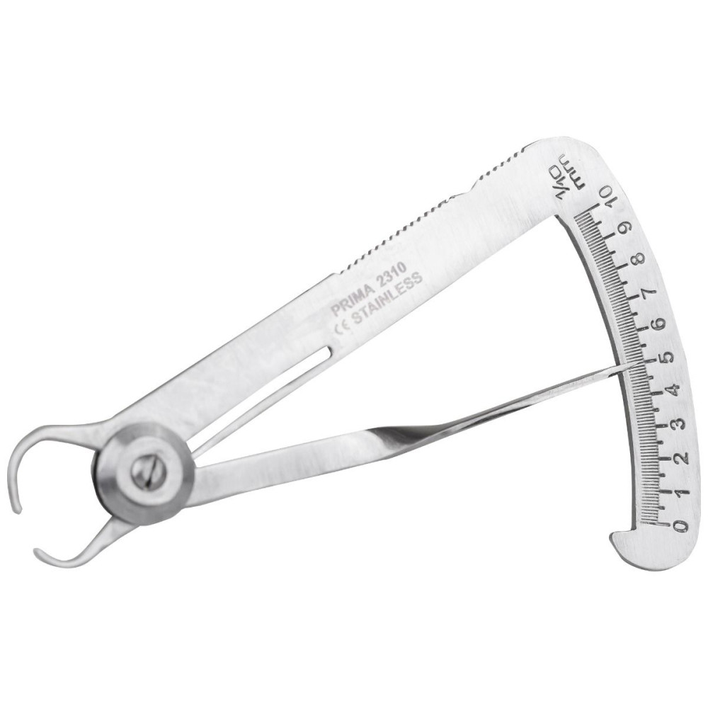 Grosimetrul pentru metal PRIMA de 10 cm este un instrument din otel inoxidabil utilizat pentru masurarea grosimii coroanelor din metal. Grosimetrul este autoclavabil si prezinta masuratori de la 0.1mm la 10mm cu precizie 0.1mm.