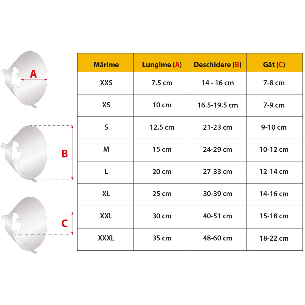 Gulerul este confectionat din polipropilena, este transparent si reglabil. Acesta are o rezistenta crescuta si asigura flexibilitatea, protectia si confortul animalelor de companie.