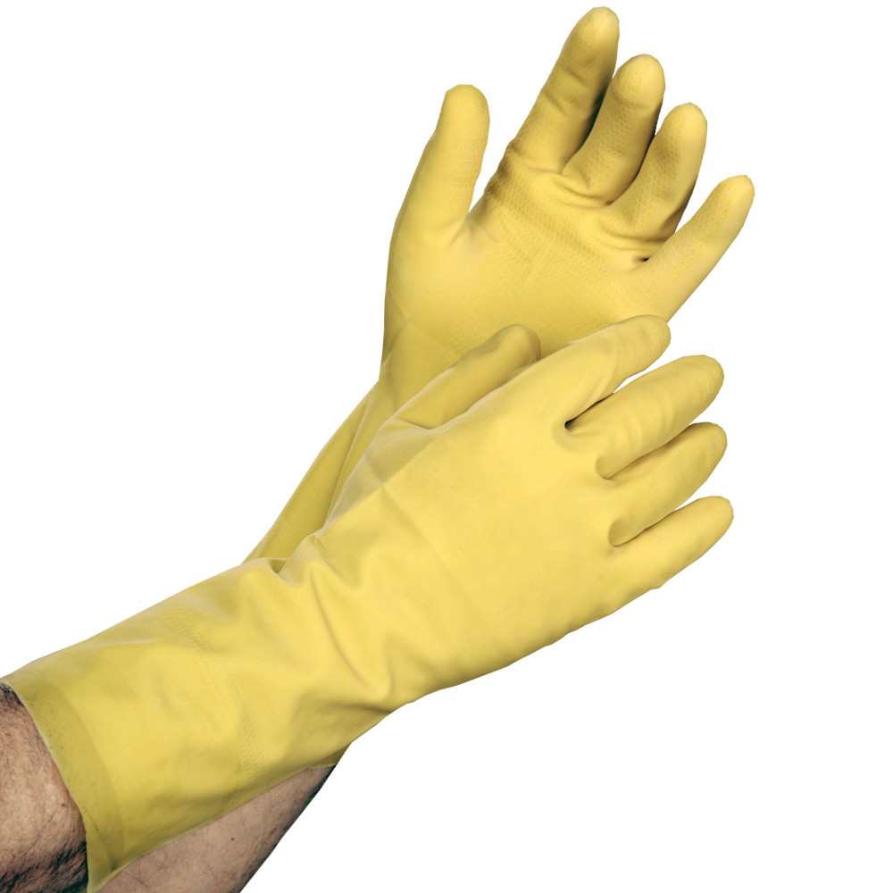 Manusile galbene din cauciuc, captusite cu puf din bumbac sunt ideale pentru spalatul vaselor, menaj, ingrijirea animalelor, reparatii auto, vopsit si zugravit, gradinarit etc.