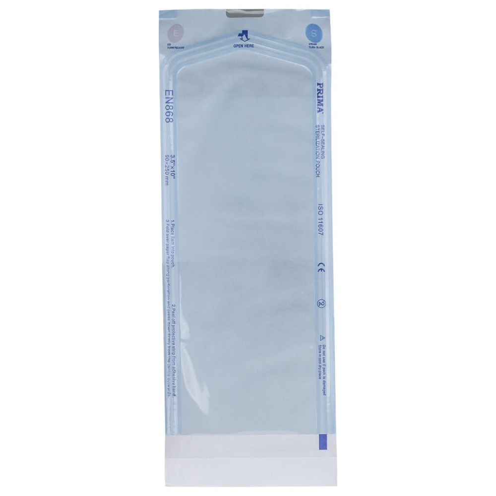 Nu necesita folosirea unei masini de sigilat, deoarece prezinta o banda adeziva speciala care inchide ermetic capatul deschis al pungii. In cazul utilizarii acestor pungi, instrumentele trebuie sa fie deschise sau demontate, iar varfurile ascutite protejate. Acest tip de impachetare confera protectie pentru contaminarea chimica si biologica din momentul sterilizarii, pana la deschiderea pachetului.