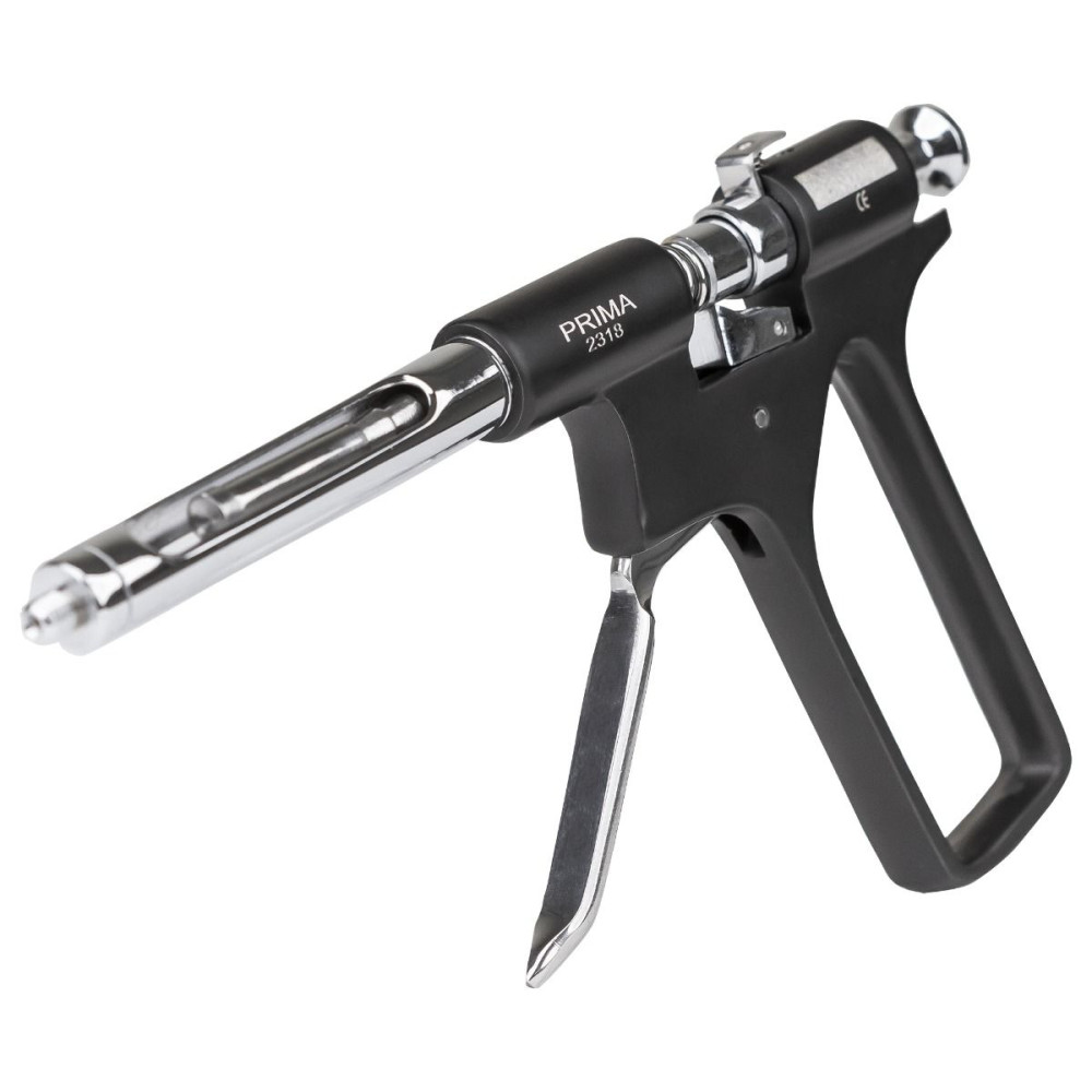Seringa din inox tip pistol pentru anestezie intraligamentara, 17 cm X 7 cm, din otel inox, se dezinfecteaza si sterilizeaza dupa fiecare utilizare.