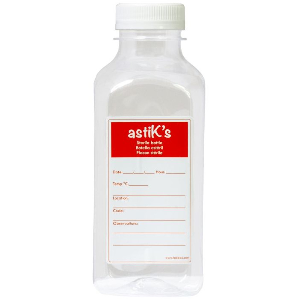 Sticla sterila pentru prelevare probe de apa 500 ml are gura larga pentru o umplere usoara si forma patrata pentru a facilita transportul si impachetarea. Slicla are capac din polietilena cu inel de siguranta si nu contine tiosulfat. Certificat de sterilizare inclus, conform ISO 19458.